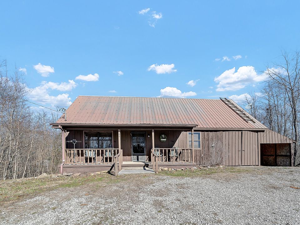 This is one of the larger cabins available for sale in the Cave Run area, and one of the best parts is the double lot with functional acreage...there is even enough room for a garden! The inside has been renovated and is ready for new owners to enjoy. The cozy eat-in kitchen has all new cabinets and updated appliances. There is plenty of space for entertaining in the open-concept family room. The spacious bathroom has a new double vanity and mirrors. You will love the convenient and spacious first floor primary bedroom with its own private deck overlooking the huge backyard. There is one generously sized bedroom upstairs, as well as a large loft area currently used as a bedroom. The loft is adjacent to a huge walk-in storage space which could easily be finished and used as a hobby room. Outside you will find the front porch you've always wanted...there is plenty of room for a swing and a couple of rocking chairs. The one-car garage and carport offer lots more storage space. This home is located in the Morganview area, and is close to Long Bow Boat Dock at Cave Run Lake. Check it out...lake season is right around the corner!!!