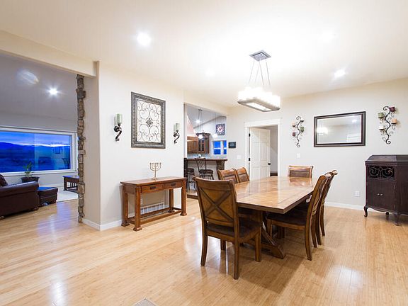 This home is a beautiful custom built home. With so many upgrades it is hard to include them all. Very spacious 5 bedroom home with a gourmet kitchen that you will love. Bamboo floors throughout the upstairs with 9' ceilings. A jack and jill bathroom off the master. Turn the other room into a nursery, office, or kick you spouse into there for the night! Down the wide staircase to the basement there are again 9' ceilings, you will find another 3 bedrooms. You will also find a kitchenette there. There is also a dream storage room under the whole garage area. Then outside you have Soldier Creek through the bottom 4 acres of the property providing sub irrigation and water rights for a garden or for livestock. The view of the Big Horns, the Fresh Air, Big Shops, plenty of elbow room Property also has a 30 x 30 insulated and heated shop with an attached greenhouse, and 288' chicken coop, also a 768' shed. Lot of room to grow a garden, already in place there is an acre of working garden plus 2 smaller gardens. There are a couple ideal places to build a arena if you were to have horses. This property have a lot of potential. P.S. did I mention all the numerous upgrades?