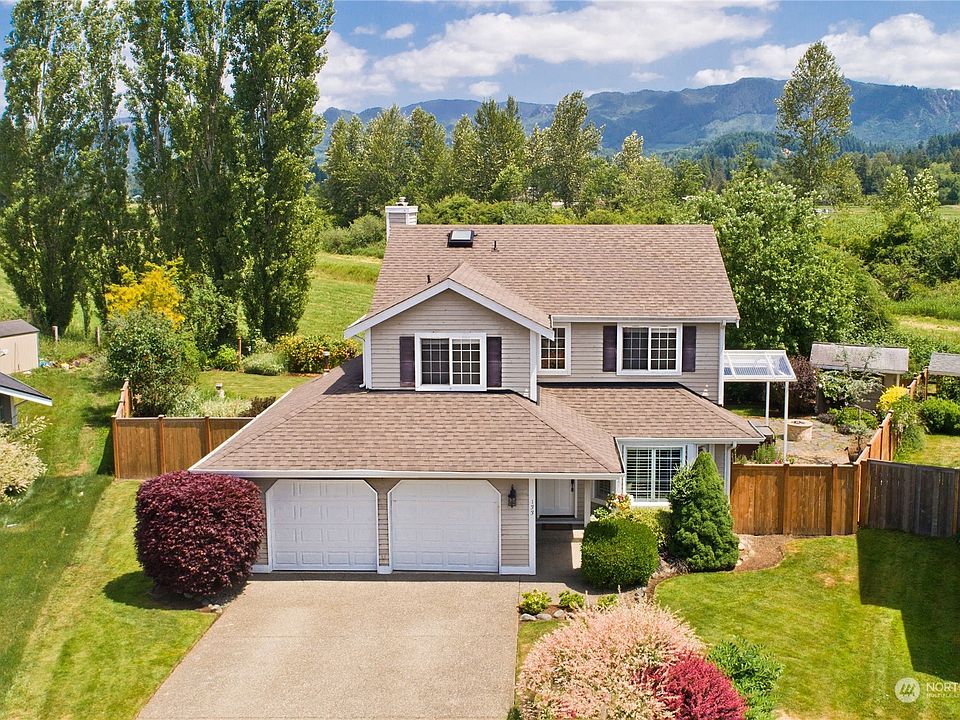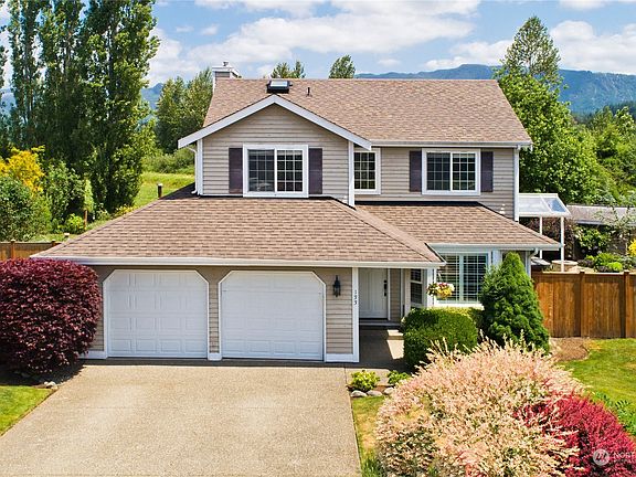 This is the one you've been waiting for. Immaculate home located on a large lot in a cul-de-sack surrounded by farms and views of the foot hills and Mt. Rainier. Walking distance to the quaint town of Enumclaw. Walk into this well kept home with a spacious living room, updated kitchen with a breakfast bar, stainless steal appliances, gas stove, country sink and more. Open concept room off the kitchen. Open the sliding glass door to the gorgeous enormous covered deck. Step down to the fire pit area with a covered hot tub. Enjoy the beautiful view and the privacy of the yard and the many different types of landscaping all around you. There are endless ways to make new memories with this home.