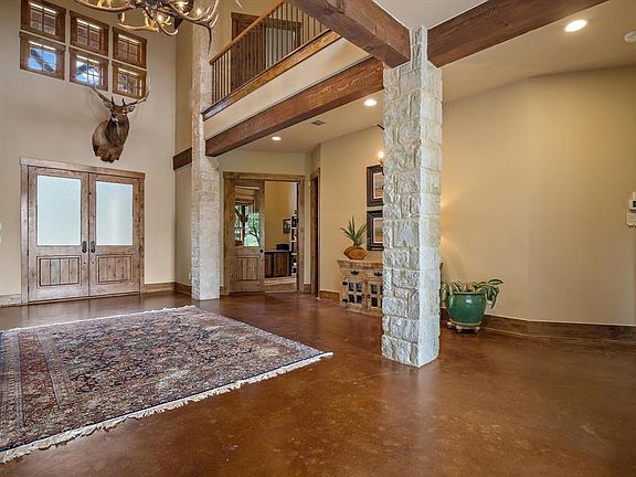 Magnificent Hill Country inspired estate with impeccable quality & craftsmanship throughout the home, as well as beautifully manicured 2.7ac! Extraordinary curb appeal with fabulous wrap-around porches, & stately dbl entry doors that open to grand foyer with soaring ceilings, impressive cedar beams & trusses, & stunning cathedral ceilings. Open design great room & kitchen with modern rustic style including gorgeous rock fireplace, wood windows, copper farm sinks, mission-style cabinetry, 8 burner gas range, & new built-in Sub Zero! Downstairs study with loft library, a spacious master suite with cozy rock fireplace, as well as luxurious spa bath that includes steam shower, & heated slate floors. Stunning picture windows thru-out much of the home that capture the amazing views of it's very private setting & well-planned pool & spa with swim up bar seats. Pipe-fenced area for horses, plus detached 3 car garage with full guest qrtrs. Gated Equestrian Community with easy commute to FW! 2022-05-20