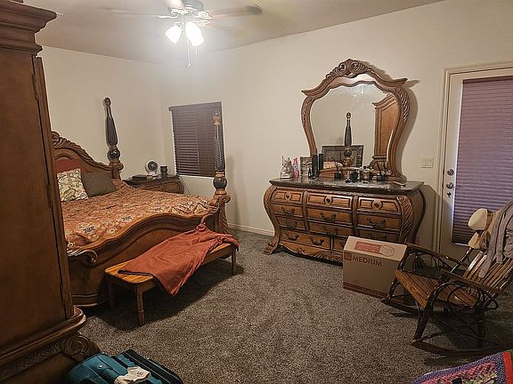 . 3 bedrooms and 2 full baths--the master bath has a walk-in shower and soaking tub. Large tile flooring with carpet in the bedrooms. RV parking with dump on the side and no HOA dues. The garage is oversized (489 sq.ft.) so plenty of room for storage. A 10' covered patio runs the whole length of the home. Fully landscaped with automatic sprinklers, drippers and a beautiful block wall that surrounds the back and side yard. Water softener, wired for speakers, smart wired. 13x50 rv cover new carpet two years ago , new sink in kitchen, dishwasher 2 years old