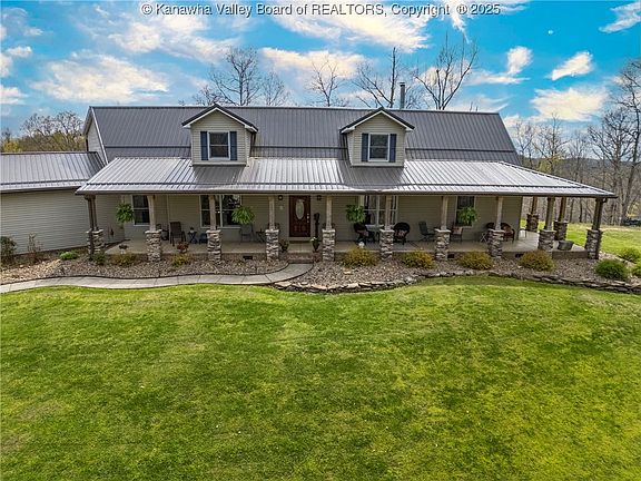 Home Sweet Home! Tucked away on over 12 acres, this stunning two-story home is a rare find for those who crave privacy, space, and style. Surrounded by trees and complete with its own hiking trails, this property brings the outdoors to your doorstep. A large, wraparound front porch welcomes you home and adds the perfect touch of Southern charm—ideal for morning coffee, evening sunsets, or simply soaking in the peaceful surroundings. Inside, enjoy hardwood floors, a wood-burning fireplace, and an open, airy kitchen with stainless steel appliances. The primary suite is conveniently located on the main floor, while each bedroom features its own private bathroom. Step out back to a peaceful porch and patio—perfect for relaxing or entertaining. Extra storage buildings and abundant closet space ensure there's room for everything.