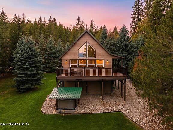 Whether you're seeking a peaceful North Idaho retreat or a year-round residence, this meticulously maintained home is the coveted Sourdough Point community blends comfort, beauty, and privacy. Set on 1.1 acres of fully landscaped grounds with lush greenery, fruit trees, and garden areas, the property offers filtered views of Lake Pend Oreille from a wrap-around deck. Inside, 2 bedrooms plus a loft and 2 baths provide thoughtfully designed living space enhanced by quality upgrades throughout. Enjoy an assigned boat slip and exclusive access to a private 5-acres island with sandy beaches, walking trails, BBQ areas, and pickleball courts. Premium systems include 30kW Kohler generator with 1,000-gallon buried propane tank, DEQ-approved HOA water system, and 1,500-gallon septic- delivering turnkey peace of mind in a stunning lake community.