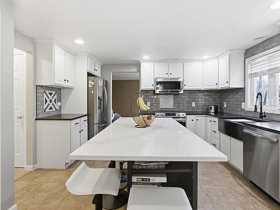 Nestled on 5+ serene, wooded acres in historic Bellingham, this beautifully maintained home offers privacy while being just minutes from the town’s major retail district. Relax on the updated screened-in porch and take in the peaceful surroundings. Inside, an open, inviting layout features a family room with a cozy fireplace and a 2023 renovated kitchen with modern finishes, center island, and stainless steel appliances. The spacious dining room flows into the formal living room, perfect for gatherings. Upstairs, the primary suite boasts a 2023 renovated en-suite bath and a generous walk-in closet created from the former fourth bedroom, plus two additional bedrooms and a full bath. The walk-out basement provides 600+ sq. ft. of flexible space. With an attached two-car garage, town water, a functioning well, and agricultural zoning, this home offers space, charm, and endless possibilities.