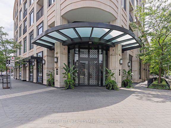 Welcome to this coveted residence in one of Toronto's most distinguished boutique buildings. Perfectly positioned in historic Yorkville, 133 Hazelton Avenue blends old world European charm with modern sophistication. Soaring 10 foot coffered ceilings and wide plank floors enhance the open concept living and dining area, which features stone kitchen countertops, a spacious island, and top of the line Miele appliances including a gas stovetop. The primary suite is a serene retreat, with floor to ceiling French doors opening to a Juliet balcony offering lush treetop and city skyline views, complemented by elegant wall sconces that add a warm touch. The spa inspired bathroom boasts a custom vanity, Kohler fixtures, and a luxurious marble clad tub shower combination. Residents enjoy an elevated lifestyle with 24/7 concierge, valet parking, a fully equipped gym, elegant party and dining room, media lounge, and guest suites. Steps to world class dining, luxury boutiques, art galleries, and cultural attractions, the limestone facade and refined interiors make 133 Hazelton a true landmark. Furnished option available.