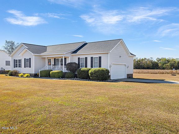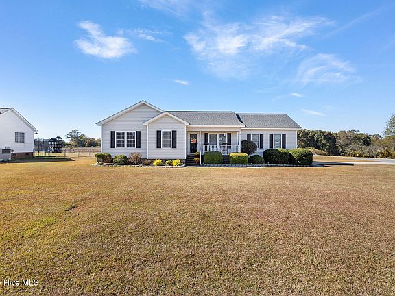Welcome home to this charming single-story, three-bedroom, two-bath ranch located in the desirable Heron Creek community. This inviting home features vaulted ceilings and hardwood floors in the main living area, creating an open and comfortable atmosphere. Enjoy mornings on the rocking chair front porch and quiet evenings on the private back deck overlooking the level corner lot and open farmland to the back. Perfectly situated near all of Goldsboro's main attractions, including UNC Health Wayne and Seymour Johnson Air Force Base, this home offers both convenience and charm. Ideal for first-time buyers, downsizers, or anyone looking to own rather than rent, this property blends comfort, location, and value seamlessly.
