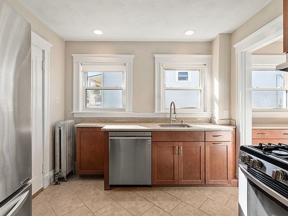 Beautifully renovated sun-filled 2025 first floor 2-bed, 1-bath condo in a classic Watertown 2-family! This move-in ready condo offers welcoming living room with brick fireplace, & a charming dining room with built-ins & a modern kitchen with stainless appliances, gas cooking, granite counters. Kitchen has access to a private covered porch with views. Features include original moldings, refinished hardwoods, high ceilings, newer HVAC with AC, 2025 roof, and freshly paint. Private basement with laundry and storage plus shared utility walk-out. Two parking spaces—1 garage & 1 outdoor—and shared stone-terraced gardens. Fantastic location between Belmont St & Mt Auburn, near Arsenal Yards, shops, and dining, with easy access to public transit, Cambridge, and the Mass Pike!