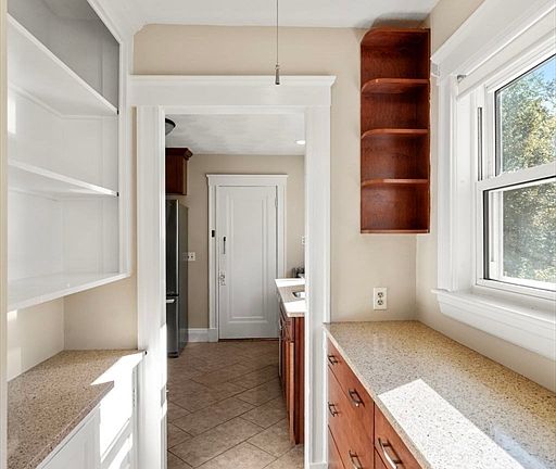 Brick fireplaceModern kitchenCharming dining roomOriginal moldingsRefinished hardwoodsShared stone-terraced gardensStainless appliances