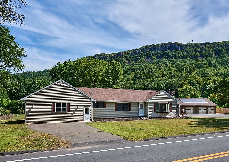 This spacious 3–4 bedroom 2300 sq ft ranch style home is nicely situated on nearly an acre of land with Amazing Mountain view and is less than a mile from downtown Easthampton & provides convenient access to I-91! Inside you will find a generous sized main bedroom, nice size kitchen, formal dining room, Great 1st floor laundry room and a bright living room w/large bay window & fireplace w/propane gas insert. The screened in porch is the perfect spot to relax outdoors and take in the Spectacular Mountain view! Updates include vinyl siding, many replacement windows, architectural roof shingles a modern Buderus heat & hot water system and newer oil tank. A highlight of the property is the IMMPRESSIVE 40 X 30 heated 3-bay detached garage w/storage above. The home could use some tlc, but is well worth it with everything this property has to offer.