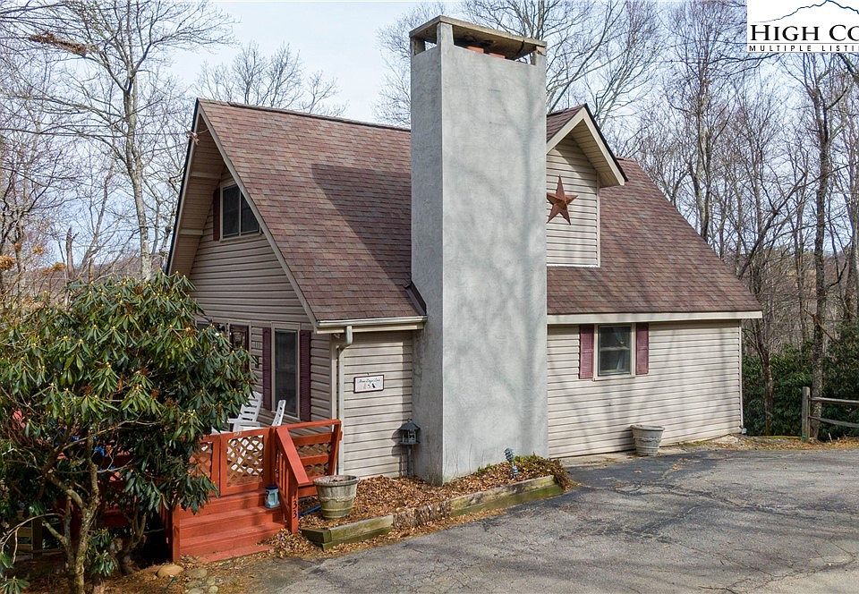 Great home for full-time residence or vacation rental. Fully-furnished, turn-key as a short-term rental. Large deck. New Bosch Heat Pump in November, 2022. Propane fireplace that could be converted to wood burning by removing the gas logs. Main floor bedroom and full bath. Ample parking provided by upper parking area and additional lower driveway. Full, walk-out basement. Property has been in short-term program since July, 2021. Listing broker is owner of the home. Last 3 photos are drone shots to show area. House does not have a view.