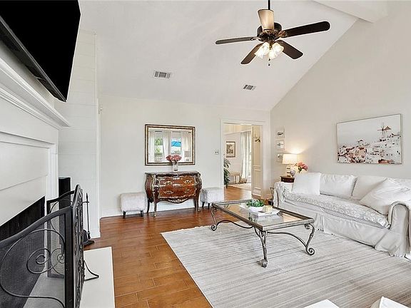 Welcome to 133 Live Oak St., a thoughtfully renovated gem nestled in the heart of Mandeville, just moments from the scenic Causeway bridge and the shimmering shores of Lake Pontchartrain. 3 bedroom plus an office! This charming one-story brick home offers the perfect blend of classic design and modern comfort, with natural light pouring in through oversized windows and highlighting the open floor plan. As you step inside, you're welcomed by soaring vaulted ceilings that creates an airy, expansive feel. The living room is both stylish and cozy, featuring a charming fireplace flanked by shiplap walls that add a touch of farmhouse elegance.