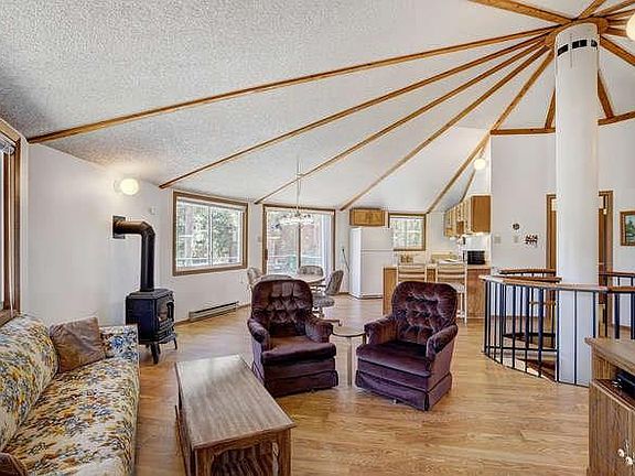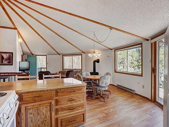 Spacious 4 BR 2 BA home in move-in condition, backs to National Forest. Walk the path from your back door into the woods to connect with a network of trails. Can even hike to ski area. Large Family rm., triple-pane windows plus 2 gas-log stoves w/electric baseboard backup make winters cozy & warm. Lots of closets! Large deck. Shed. Paved driveway. Mountain views from every window! Nicely landscaped with self-sustaining wildflowers. Quiet neighborhood. Abundant wildlife. A true paradise!