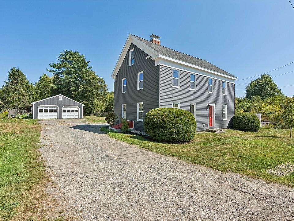 Outdoors, a detached two-car garage, greenhouse, and established gardens with trellises invite an urban-homestead lifestyle just one minute from Cumberland Center and Greely. The property borders a working railway, where the passing train becomes part of the rhythm of life; a unique reminder of the farmhouse's heritage and place in Maine's history.