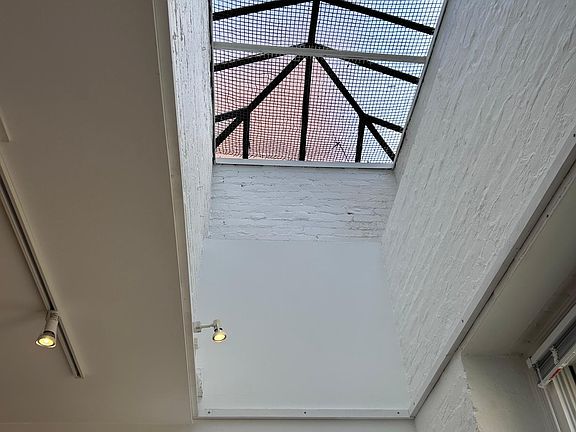 Large skylightSpacious kitchenAbundant daylightGranite countertopsHigh ceilingsHardwood floorsTall windows