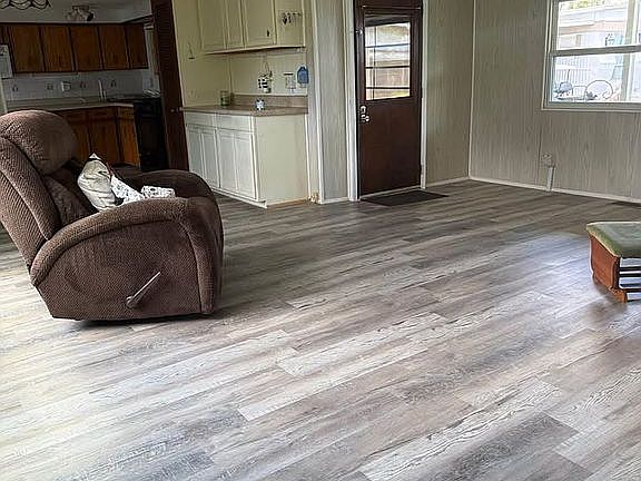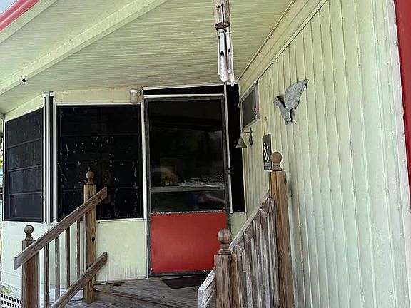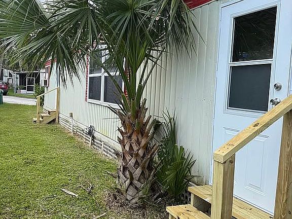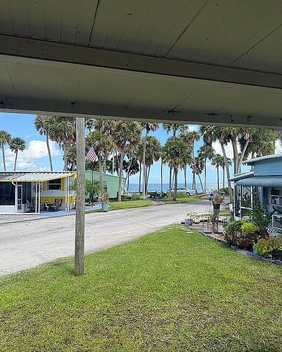 This is a very nice mobile home for sale in the Oak Point retirement community. Located on the Indian River with nice water view across from the KSC where you can view launches from your living room. This home was recently renovated and has a new roof. It is a 2 bedroom 2 bath (one bath with shower only). Large attached lanai with ducted A/C. Combo heat/central A/C. Natural gas, town water and sewer. Comes with laundry porch in back, and two sheds. Lot rent is currently $598 which includes sewer, water and trash removal.