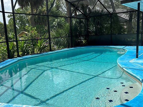 Don't miss this rental property. It's located in Sunridge Woods just off Ronald Regan and centrally located to Championsgate & I-4 corridor. Home features 3 bedrooms and 2 bathrooms with private screened in pool. Split floor plan with easy care concrete stained flooring throughout most of the home. Vaulted ceiling in Living area. Very nice view from the pool, oversized lot & privacy. Lawn & pool care are included in the rent.