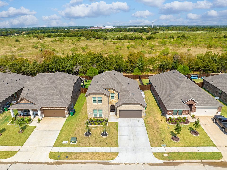 You don’t want to miss this rare opportunity to own a Copaiba floor plan—the builder is no longer offering this layout! This stunning 4-bedroom, 3-bathroom home with a game room is located on one of the few streets in the neighborhood that backs up to mature trees, offering ultimate privacy and a peaceful backyard view. Step inside to fresh new paint throughout and an open-concept layout featuring soaring 18-foot vaulted ceilings in the living room and a cozy electric fireplace that’s perfect for the holidays. This smart home also includes keyless front entry for added convenience and security. The spacious eat-in kitchen is a dream with quartz countertops, a large island, and a gas cooktop—ideal for cooking and entertaining. The primary suite is located downstairs, along with an additional secondary bedroom and full bathroom—perfect for guests or multigenerational living. Upstairs, you’ll find two more bedrooms, a full bath, and a versatile game room or loft space that opens to the main floor below. The backyard features a large covered patio with plenty of space for lounging, dining, and grilling. Other features include a tankless hot water heater, sprinkler system, French drains, and a professionally engineered post-tension foundation. Located just steps from the community pool, ponds, walking trails, and the brand-new Kathy Kirkpatrick Elementary (opening this year). Zoned to the highly rated Caddo Mills ISD and just 1.4 miles from the high school. With quick access to Hwy 36, I-30, and Hwy 66, you're minutes from local dining, shopping, and all the small-town charm Caddo Mills has to offer—like Fox Fest, Market Days, the Red White & Boom celebration, and the Caddo Flea Market, just to name a few.