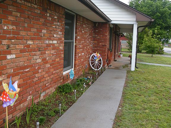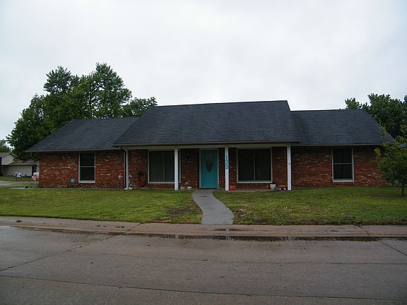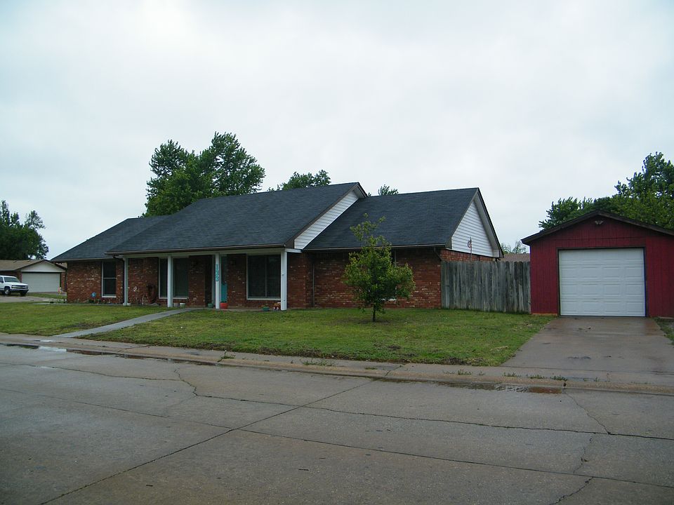 Adorable 1,562 Sq ft MOL, 3 bedrooms, plus bonus room, 2 bathroom, move-in ready home! Great corner lot with extra driveway and detached garage, 3 car garage total with a shop! The kitchen has a breakfast bar that opens up to the dining/living room. Lots of natural light through the french doors that open up to the covered patio! It is equipped with a storm shelter. Recently installed new high efficiency windows, dishwasher, AC unit, and front door as well as new concrete pathways. Really must see! The good ones go fast!