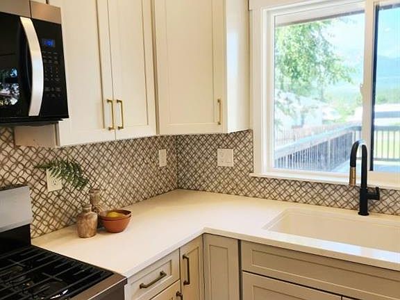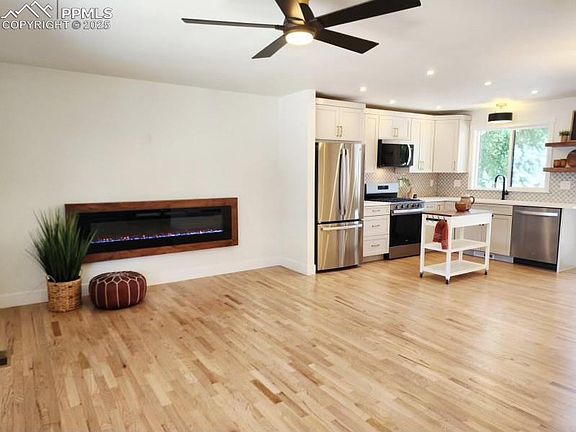 TAKING BACK-UPS! This home has been completely and extensively remodeled with exceptional craftsmanship and attention to detail. There truly isn’t another like it. Step inside & immediately be captivated by the high-end finishes and luxurious touches throughout. The open-concept family room and kitchen lead to a massive 900 ft deck, prepped for your hot tub & outdoor living dreams. From here, take in mountain views from your private backyard oasis. Outdoor Living At Its Finest! The newly remodeled deck features composite decking, modern railing, 8-ft stairs leading to the backyard &oversized garage. Under the shade of a beautiful tree, design your own outdoor kitchen or relaxation zone. The primary suite includes a walk-in closet, private ensuite bathroom, and direct deck access. Perfect for morning coffee with a view. The second bedroom connects to a full bathroom, making it ideal as a private guest suite or secondary master. Top-to-Bottom Upgrades! Everything in this home is new: Oak hardwood flooring, Custom kitchen with solid surface countertops, stainless steel appliances, New bathrooms, new fixtures & finishes, electrical with panel, furnace & AC, ducts, plumbing, roof, windows, gutters, downspouts, interior framing, trim, hardware, Energy-efficient insulation to current code, Built-in electric fireplace, paint inside & out, covered concrete porch/sidewalk. Bonus Features & Investment Potential! Sitting on a spacious 10,000 sq ft multi-family zoned lot, it includes an 800 sq ft garage, 100-amp panel, Natural gas furnace, insulated/ drywalled with potential to convert living space for family use or rental income. Alley access to the garage & backyard adds convenience and functionality. Better Than New, Move-In Ready, & Full of Possibilities! This home is spotless, thoughtfully designed & truly move-in ready. Whether you're looking for a cozy personal residence, a mountain-view retreat, or a property with income potential, this Monument gem has it all.