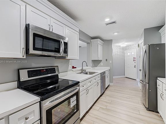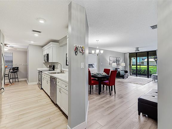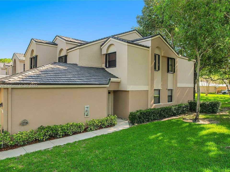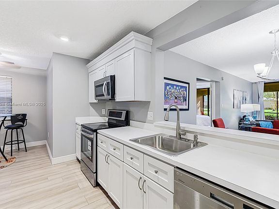 Must see!! Sought after first floor, 3 bedroom/2 bath, end unit in Chatham Towne at Jacaranda...boasts a desirable split floor plan and a comfortable, stylish layout. Featuring sizeable master suite with remodeled shower, walk in closet, stainless steel kitchen appliances, full size washer/dryer, screened in patio, and attached garage with driveway space for two additional cars. Looks out at a spacious courtyard. The community offers a pool and clubhouse for your enjoyment. This charming home is located in the inviting city of Plantation.