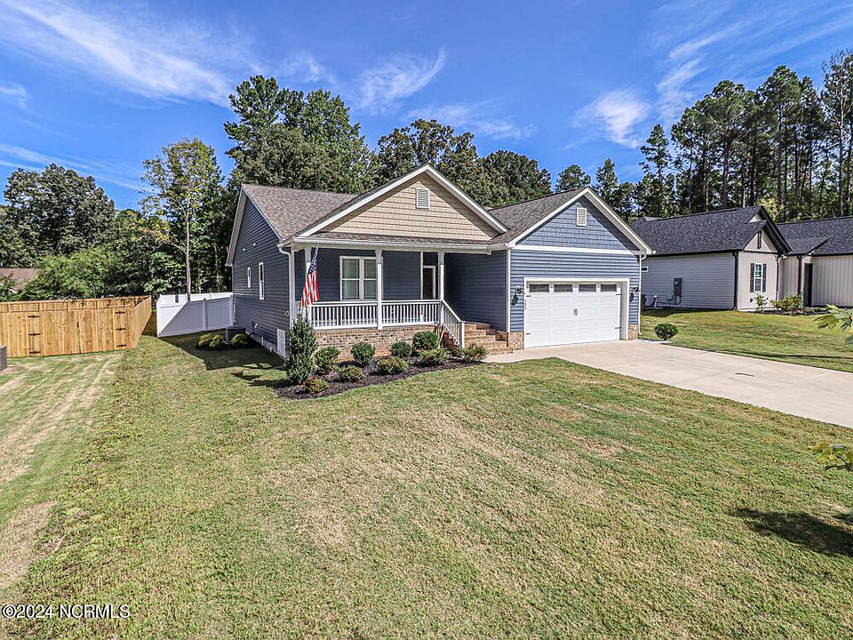 Home also impresses with its charming curb appeal, featuring a rocking chair front porch, a screened-in rear porch, and a lovely backyard enclosed with a 6-foot vinyl privacy fence. Additional highlights include temperature controlled crawl space, a fully sodded lot, convenient drop zone and Generac transfer switch as wired for a whole house generator