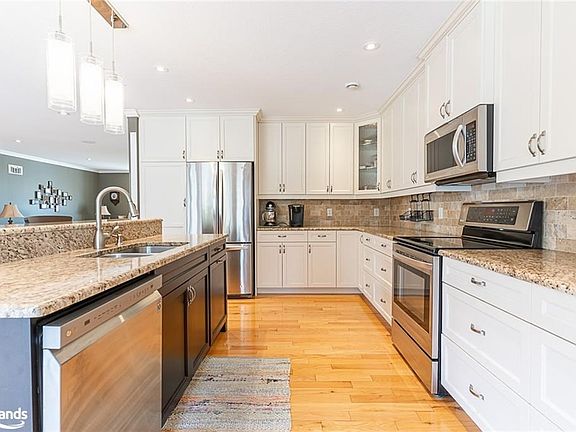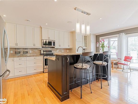 Welcome to 133 Park Street, located in a highly sought after area just outside of Owen Sound. This property offers a custom built bungalow, a detached workshop with heat, hydro and water, plus just over 5 acres of land. This home of over 5000 sqft of living space boasts a total of 6 bedrooms and 4 bathrooms. The main level is open concept with hardwood and ceramic tiles. The large kitchen features an oversized island, plenty of storage in the custom designed Exquisite Wood Design made cabinetry and granite counter tops with s/s appliances. The high quality composite deck is accessible off of the kitchen and family room and offers a convenient n/g BBQ hook up. One of the best spots in the home is the family room which features a cathedral ceiling, a fireplace and plenty of natural light from the skylights and windows. There is main floor laundry as you enter from the attached 2 car garage plus a primary suite with walk-in closet and shared ensuite which has in-floor heating and an oversized tiled shower. As a bonus, the main level of the home has many accessibility features. The fully finished basement has in-floor heating throughout and is a great area for games and hang out. The basement is complete with a 4pc bath, 3 bedrooms, storage and access up to the garage. The asphalt drive surrounds the 36'x56' shop which features a space of 24'x36' heated area plus 2 oversized garage doors which are 12'x12'. On the roof of the shop are 66 solar panels which produce 100% of the hydro needed to run the house and shop. This location is minutes from Georgian Shores Marina, picturesque golf (Cobble Beach, Legacy Ridge) and great schools! This property offers a great retreat for all your hobbies. 2022-08-15