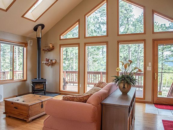 Incomparable views from the top! This mountain contemporary home offers an open floor plan with plenty of indoor and outdoor entertaining spaces. Hardwood flooring, 6-panel wood interior doors, molding and trim, vaulted ceilings and 2-story windows are just a few of the highlights of this beautiful home. A newly stained multi-level wrap-around deck with hot tub expands 3 sides of the home and capitalizes on the completely usable 2-acre site and mountain views. The car-enthusiast will love the 4-car attached and heated garage with engine lift! Open kitchen features a large center island with seating, wood floors and all appliances included: stainless steel 4-burner gas stove, microwave oven, dishwasher and refrigerator. Vaulted ceilings with skylights, wood burning stove, floor to ceiling and clerestory windows in the south facing great room. Walk-out lower level has plenty of space for a combination recreation room/home office or guest suite with an adjoining 3/4 bath.