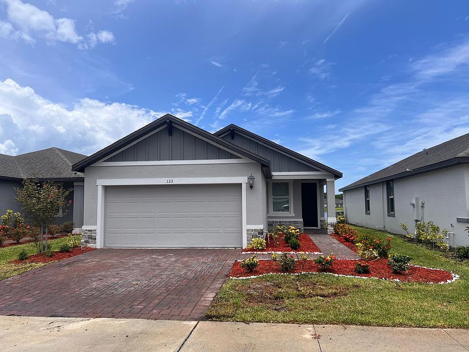Owner takes care of lawn. Highly energy efficient home at a pristine golf community, located in LPGA International. It features modern upgrades including ceramic tile floors in main living area, granite countertops, white 42'' cabinets and Whirlpool stainless steel appliances. Light filled open floor plan with stunning water views throughout the living area and primary suite. The primary suite is tucked in the rear of the home offering plenty of privacy and features an oversized walk-in closet and shower. Conveniently located, walking distance to the community center where you can enjoy all the amenities that LPGA offers. Extra bonus features include: 2 car garage, 2 car driveway, smart door lock, sky-doorbell, alarm, smart thermostat as well as garage door. Prime water view.