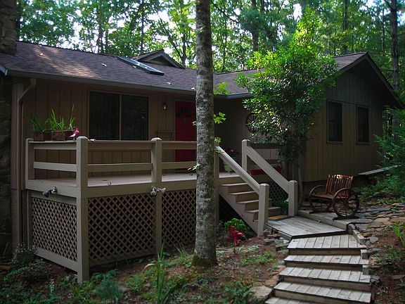 The AERIE is a cozy ranch style mountain retreat. ONE LEVEL LIVING is a plus with a 26X18' sun room that brings nature in. The cabin's open floor plan is perfect for relaxing or entertaining. Huge main living area with vaulted beamed ceiling. Beautiful rock faced fpl will warm cooler evenings. Kitchen has trey ceiling with stainless appl and solid surface counter tops. Master bath is gorgeous with all new tile floors, shower and soaking tub. Drive under garage has lots of extra space for workshop and storage. In Skylake Gated Community with great amenities: pool, tennis, clubhouse, hiking trails, waterfall/picnic area, 2 fishing lakes, barn and pasture, RV parking and Garden Plots. See VT of home and neighborhood