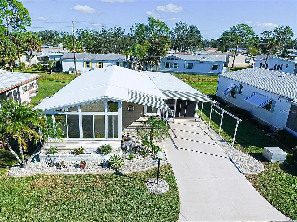 Click on Tour 1 Icon for Video Tour! Welcome to Lazy River Village in North Port, Fl. A lovely +55, manufactured home waterfront community, with clubhouse and community pool, workout room and tennis courts. Located on the Myaka River. Presenting this 2 bed/2 bath w/carport manufactured home. LOCATED IN THE PET FRIENDLY SECTION OF LAZY RIVER! Immaculate, move-in condition and stylishly furnished. Being offered turnkey. Designed with a modern flair and a warm palette. Many of the furnishings are recent purchases. Interior repainted 2020-2022. Great room (new vinyl plank flooring 2022) combines with the front Florida room to create a charming and spacious living area. Florida room has custom soft shades, vinyl plank flooring, sliding glass windows with screens. So much natural light. Kitchen chimes in with granite counter tops, ample cabinetry and sparkling appliances. Refrig, stove and microwave new 2022. Kitchen has a breakfast bar and opens to dining area. Master bedroom has newer carpet blinds and paint. Master bath has both a walk-in shower and a separate tub. Second bedroom also has newer carpet and paint. 2nd bath has been updated w/high profile toilet and newer vanity. HVAC 2018. Hot water heater 2016. Owners have contracted for a NEW ROOF and NEW CARPORT! Step out into the expansive side lanai area extending almost the ENTIRE length of the home. New acrylic sliding windows with screens and sunshades. Both fun and functional. Lazy River Village offers a +55 lifestyle. Tennis, pickleball, workout room, bike club and card clubs. Let's not forget the community pool! Marina, RV and boat storage available for additional fees on a first come first serve basis. Excellent location. Close to beaches, shopping and restaurants. The Braves spring training stadium is a short drive away. Sun, Fun, come join us in Florida!
