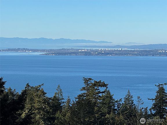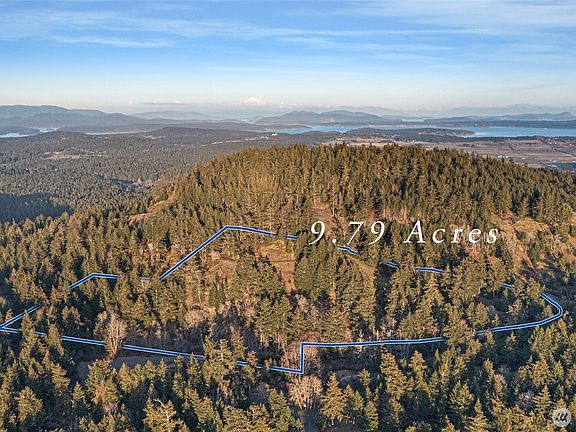 Magnificent westerly views on a dream building site await atop Mt. Dallas. This 9.78-acre parcel offers San Juan Island’s finest sunsets that paint the skies from the Olympic range, to Victoria’s twinkling lights, and beyond to the northern Gulf Islands. The vast sunsets melt into starlit skies while ships glide silently below. This rare offering is fully prepared: 2 private wells w/water system , 5BR septic drain field, paved road, 4KW power, phone, high-speed internet installed & fiber with speeds up to 1000 mb/s is now available for hook up. Survey & geotech complete. Two soulful cabins—a driftwood-crafted retreat and a rebuilt blacksmith shop—offer fun accommodations while you build your dream home.