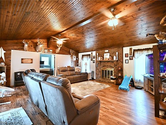 Welcome to this beautiful 4 bedroom, 2 full bathroom Ranch Home! This very spacious property offers a comfortable and modern living space, perfect for entertaining with its open floor plan. As you step inside, you'll be greeted by a living room that is bathed in natural light thanks to the large windows that overlook the well-manicured front yard. There is vinyl plank wood flooring throughout which adds elegance and durability, while the neutral color palette creates a relaxing atmosphere. The eat-in kitchen offers plentiful counter space along side its beautiful hardwood cabinets. Through the sliding glass french doors you will find yourself immersed in a huge great room featuring vaulted hardwood ceilings and a brick fireplace. There is also an addition of a new master bedroom and master bath en-suite with walk-in shower which completes this true oasis of a home. There are an additional three bedrooms that are equally spacious and offer plenty of natural light. If 4 bedrooms isn't needed these additional rooms would be perfect for a home office, studio, or a playroom for the little ones the possibilities are endless!