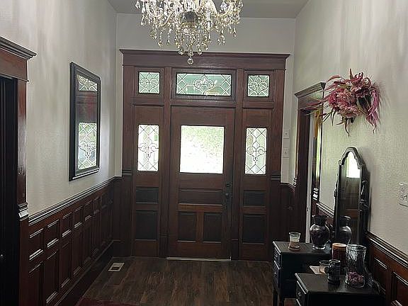 1903 Queen Anne Victorian Home just can't find these everyday! Sellers installed all new PEX plumbing, new electrical wiring, & fuse boxes Installed, two CH&A units, 3 full bathrooms, spa tubs & 2 tile showers, original wood flooring, new Attic Fan, added insulation to roof & floor between stories-installed some new windows, installed new back door, new roof installed (2021) with complete new decking of roof, roof is up to code with the state insurance guidelines that are required. All new drip edging around complete roof is up to code, Large 2 bay detached garage, sits on 4 large lots or a half a city block, original wood work from 1903. Owners installed 4 new chandeliers, owners installed new gas lines throughout the home. Owners converted the two original fireplaces into propane gas logs and owner added a fireplace inside dining room. Owner has updated a lot of things in this home but has kept the original feel of walking into this 1903 Queen Anne home as it was when it was built.