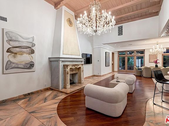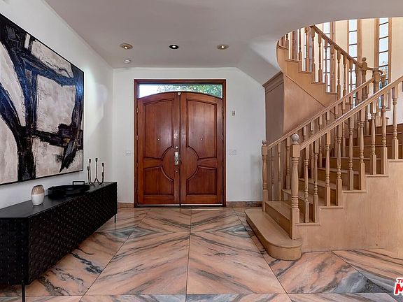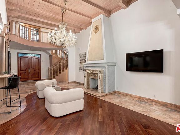 Magnificent and voluminous 2sty Contemporary Mediterranean in a most coveted location on a quiet Beverly Hills road just south of Wilshire and moments to all of the finest amenities. From the moment you enter, the open floor plan exhibits super high ceilings (some beamed and others with Art Deco influences), exquisite marble and dark wood floors, and French doors. Huge Great room with entertainer's bar leads to the rear yard with attached pergola and extensive patio space. Lovely front den/office downstairs with powder room. Fabulous cook's kitchen with top appliances and large breakfast/dining area. Upstairs features 4 bedrooms with high vaulted ceilings and great natural light. Primary suite has a sitting area and luxe bath. The three rear-facing guest bedrooms upstairs each have Juliet balconies. An large elevated loft-style upstairs family room is another unique highlight of the home. Bonus/storage/laundry room of over 300SF is in the rear NW corner of the lot. Long-term only and amazing furniture can be included at a higher monthly rate.