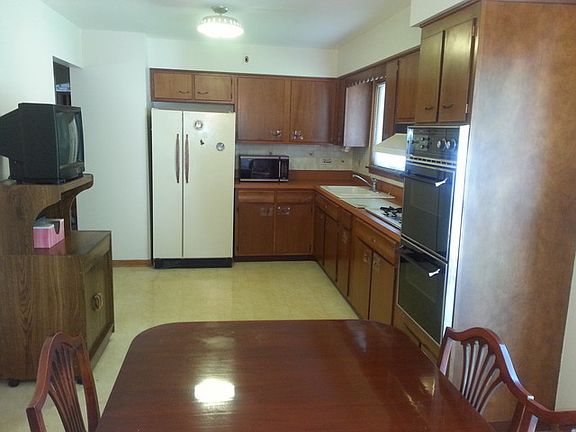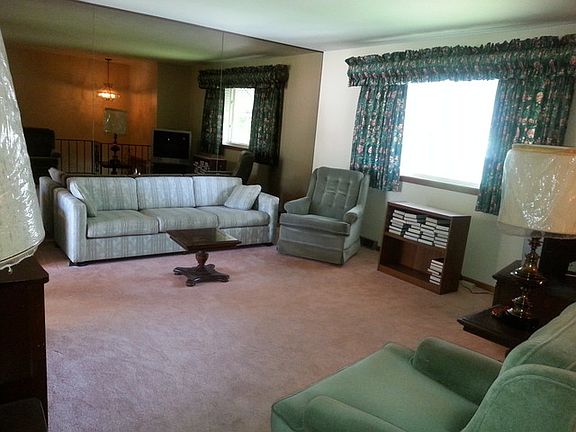 Spacious 3 bed room raised ranch. Newer roof, windows, furnace Central air and gutters.Hardwood floors in 3 bed and hallway, also under the carpet in living room. Heated 2 1/2 car garage. Concrete drive, fimished basement with family room, 1/2 bath, laundry room and utility room. Large fenced yard. Quite residential area, conveniently located, near schools and shops.