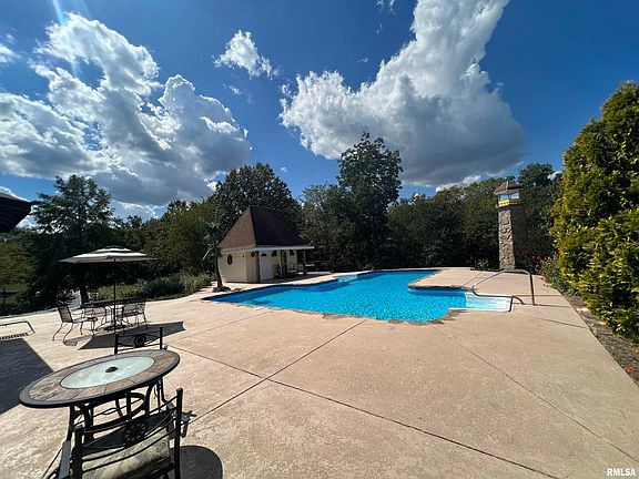 LOVE THE LAKE LIFE ? THEN THIS IS THE HOME FOR YOU! Bring all your toys and enjoy the 2.2 acres of land bordering Kinkaid Lake With a 2min walk to Marina. This beautiful 5 bedroom 3 bath home was originally built as a vacation home and was made to entertain. From the heated inground pool, pool house with indoor & outdoor showers. Multi layer decks overlooking the water. Grand entrance with the 2 story foyer, marble flooring with radiant heat throughout the main level in the kitchen and family room. The kitchen features top appliances, gas grill with its own vent so you can bring your bbq grillin inside. Views of the pool and pond are relevant throughout the home, the large master suite upstairs features a loft and outdoor balcony, jacuzzi tub, dual vanity and 2 walk-in closets. Two other bedrooms upstairs and one features another balcony overlooking the koi pond and gazebo. Two more bedrooms on main level and additional living space in the detached garage featuring a family room with wood fireplace and wonderful bar that is made for recreational fun and business with a office including desk and 2 fireproof safes, full bathroom with laundry, kitchen, your own personal gym and space for all your family gatherings. Property is also equipped with newly installed wood boiler system that will heat the home, pool and garages. This is truly a unique property with so many details for living the lake life to its fullest. Call today for your private tour of this one of a kind property.