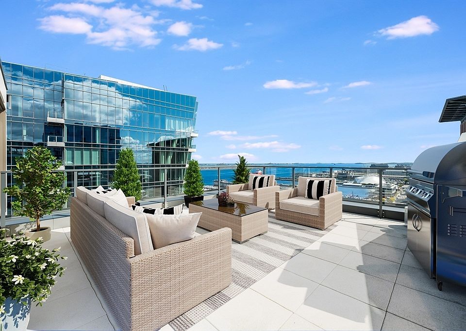 A true one-of-a-kind opportunity at EchelonSeaport—this is the first water-view terrace residence ever to return to market, one of only ~10 in the entire building. This spectacular 3-bedroom, 3.5-bath home offers sweeping harbor views from its expansive private terrace and an additional balcony off the primary suite. Every detail has been thoughtfully curated, from custom built-out closets to designer window treatments in every room. The open-concept living space and chef’s kitchen set the stage for seamless entertaining, while floor-to-ceiling windows flood the home with natural light. Two garage parking spaces complete this rare offering. Don’t miss this first-time-ever chance to own one of the building’s most coveted residences. EchelonSeaport offers 50,000+ SF of amenities, including 3 pools, fitness center, basketball court, yoga, sports simulator, lounges, dining, terraces with fire pits & grills, plus 24/7 concierge and onsite retail—all in Boston’s vibrant Seaport.