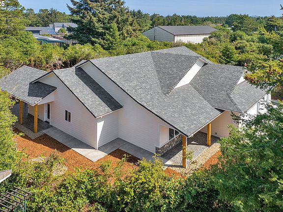 New construction in Shelter Cove. 2,120 sf, 3-Bedrooms, 2-Bathrooms with an oversized 3-car garage, and the addition of a RV/boat parking pad on 0.43 acre. The builder carefully designed the home with an element of separation and elegance. No open living concept. The foyer is open and grand setting the stage of the efficient layout. Finishes of include coffered ceilings, LVP and tiled flooring and glass like painted trims. 11ft ceilings accented with coffered ceilings in the dining and foyer. The versatility of the 3rd bed/office/library is accessible by bay doors for added privacy with separation from main living area. The oversized open kitchen will please the most particular chef with an open spacious walking area, 9’ ceilings, ample countertop area, painted cabinets with soft close drawers and a large walk-in kitchen pantry with a 2nd separated pantry included for appliance storage. En-suite offers dual sinks, a very large linen closet with a tiled zero step walk-in shower for ease. The oversized garage is finished with painted and textured sheetrock. Entertain or relax on the oversized wrapped covered concrete patio finished with stained wrapped beams and tongue and groove sealed blue pine ceilings. Enjoy the Oregon Coast sandy beach of the Siuslaw River/North Jetty by a maintained deeded access offered to Shelter Cove residents, conveniently located across the street!
