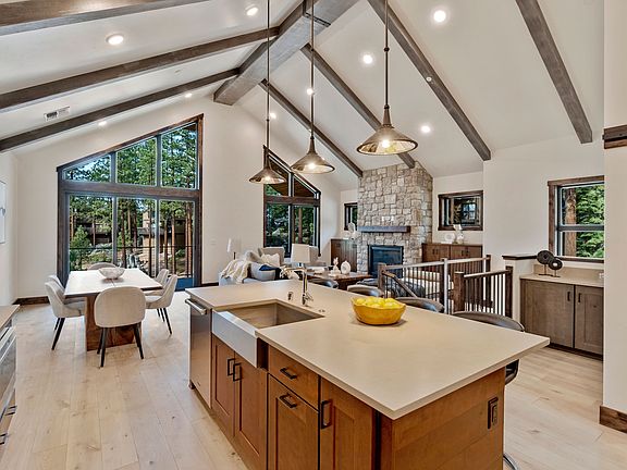The single-family Alpine floor plan features an oversized 2-car garage with an attached storage room - intelligently designed for your ski or lake gear. The entry-level includes two large guest bedrooms, a full bath, and more linen storage space. Ascend to the main level, where you will find soaring 19' cathedral ceilings arched over the living-dining-kitchen combo space, complete with a cozy gas fireplace with standard floor to ceiling rock. Massive windows and a double sliding glass door just off the dining area leads to the covered deck and direct-access to Tahoe's natural beauty. The spacious master bedroom and bath suite, another powder bath, and the laundry room are also located on the main level. Luxury standard home features include a built-in SubZero® refrigerator, WOLF® oven & range, high-end shaker door cabinetry, Moen® plumbing fixtures, Quartz countertops, and much more. In addition to the included features, Homeowners at Sierra Colina can also work with our professional design team to upgrade their cabinets, flooring, counters, and tile. Please get in touch to learn more or to schedule your private tour today!