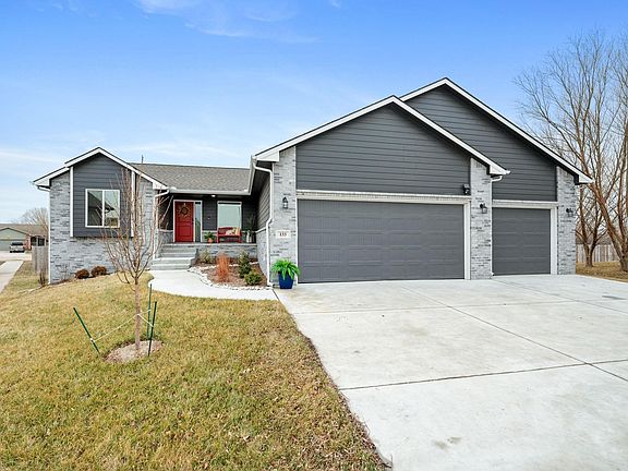 This BEAUTIFUL home provides an ideal location with a Small-Town Community feel but offers an easy commute to Wichita! The neighborhood features a Walking/Jogging Path, Pond stocked for Fishing, Playground, & Splash Park ALL WITHIN SHORT WALKING DISTANCE! The home offers a WELCOMING FEEL starting the moment you pull up, with Professional Landscaping and a large Front Porch. As you walk inside you will find a LARGE, inviting, Open-Concept Main Living Area with GORGEOUS LVP Flooring throughout and Vaulted Ceilings, a spacious Dining Area, a Kitchen with an Island/Eating Bar which offers extra seating, Granite Countertops, lots of Cabinets with plenty of storage space, & Pull-Out Shelving, a Walk-In Pantry with Built-In Spice Rack, upgraded Kitchen Appliances that stay with the home. This home features a Split Bedroom Layout with the Master Suite off the Kitchen featuring a beautiful Master Bathroom with a large Walk-In Shower, His and Hers Sinks, & a spacious Walk-In Closet. On the other side of the home, you will find 2 more bedrooms & the second Full Bathroom. A Mud Room and SEPARATE Laundry Room (Washer/Dryer stay with the home) finish off the Main Level. The View-Out Basement offers plenty of Natural Light. With a HUGE Rec/Family Room partially plumbed for a Wet Bar, so you can choose the size you want to suit your needs, In-Wall Cable Management System to conceal your electronic cords, 2 more Bedrooms (one room is equipped with a Sink for a Craft Room/Art Room/Playroom/Classroom or convert it back to a Bedroom), the third Full Bathroom, a Storage Space that can be converted into a Bonus Room, & lots of extra storage throughout. Out back there is PLENTY of space for Entertaining or Relaxation with a HUGE Fenced in Yard. The Backyard features a Large Deck and a MASSIVE Concrete Patio with wiring for the Hot Tub of your choice. The Backyard offers so much SPACE to truly make it the Oasis of your Dreams! Don’t forget the OVERSIZED 3+ Car Garage with room for a 4th Car parked tandem or use this extra space for storage, a workshop, or to store extra toys, whatever you need! Did I mention this home offers UPGRADES GALORE setting this house apart? (See attached Features and Upgrades flyer for a list of some of the extras this home offers). Come and see this BEAUTIFUL home in person TODAY!