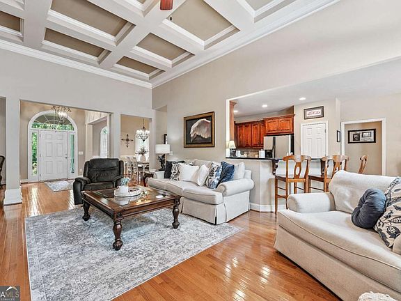 Welcome home to this custom-built 4-bedroom, 3.5-bath, one-owner ranch on a full, unfinished daylight basement situated on a large estate lot backing up to Lake Allatoona. You can walk to the lake and it's only 1 mile to the beach and boat access!! This home features a separate dining room, office/formal living room, and family room with soaring gorgeous coffered ceilings and a stone fireplace, open to a breakfast room and gourmet kitchen with granite countertops, stainless steel appliances, and plenty of storage. The primary suite on the main includes a vaulted tray ceiling and a beautifully updated ensuite bath with double vanity, separate whirlpool tub, glass shower, and a large closet. A sun porch/screened porch and sundeck are just off the master. Two additional bedrooms and a full bath are on the main floor and the fourth bedroom and full bath are upstairs, along with easy attic storage access. Access to the upstairs bedroom is just off the laundry area where a private staircase leads up. The main-level laundry room includes a sink and built-in cabinetry for added convenience. An extra-large two-car garage with side entry door offers easy access, and ample driveway parking offers convenience for family and guests. Additional features include hardwood floors, beautiful crown molding, plus a LARGE unfinished basement stubbed for a bath with a fantastic layout for future finishing. The basement also features two sets of French doors and two breaker boxes. Privately situated on a manicured lot with mature trees and a welcoming rocking chair front porch, this home is just minutes from Lake Allatoona, Sweetwater Creek State Park, Big Door Vineyards, and all the amenities Cherokee County has to offer.