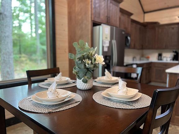 Charming and inviting is how you would describe this 1 bedroom, 1 bath contemporary style home. The home offers a spacious luxury feel that is sure to make you want to just relax in style! The large living and open kitchen concept with scored concrete floors and a gas-logged fireplace give you plenty of space to entertain. As you enter the bedroom the windows boast natural light coming from outdoors that gives a sense of nature. To add to the style there is a tiered tray ceiling and recessed lighting, with an ensuite luxurious bath that compliments the new modern design. The outdoor porch and side deck offer an outdoor fireplace and hot tub. Just down the side steps will lead you to a pond that adds that extra special touch to this beautiful home. You must see it to realize the possibilities that this place has to offer. This property is perfect for any investment!