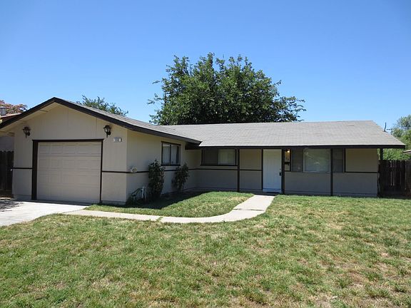 This house has approximately 1250 square feet with a living room, dining area, beige carpets, tile flooring, blinds, formica counters, gas range, dishwasher, garbage disposal, laundry room, central heat & air, ceiling fans, back patio, front porch, 2-car garage, front & backyard with automatic sprinklers. Take E. Las Palmas Ave to Weber Ave, then turn right onto Tenbrink Lane. Close to school, park & shopping. Pets strictly negotiable (2 small pets under 15lbs or 1 medium pet under 50lbs, outside only).L/D