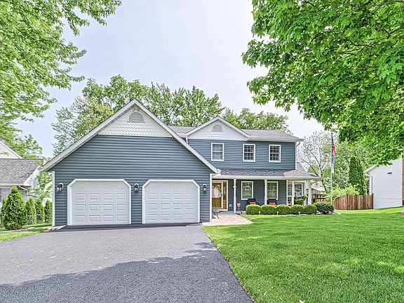 Welcome to this 2 story colonial in sought after South Western School District. This one owner home has been cared for and has many updated features. The first floor is complete with formal living and dining rooms. 1st floor den with pocket doors could be a bedroom or game room. The front window was framed for a door, so an exterior exit door could be added. The spacious eat in kitchen has Bruce hardwood floors, granite countertops, a pull out pantry closet and large bay window. The family room features a vaulted ceiling, gas fireplace, ceiling fan that is switched for a light and double opening french doors that leads to the elevated deck. You'll the love the view, peace and tranquility the stream beyond the backyard offers. That area beyond the boundary line is owned by Penn Township and is trimmed in daylilies. Upstairs the primary bedroom and bath has the space everyone wants. Large room, walk in closet and generously sized primary bath with double sink, whirlpool tub and separate shower. 2 spare bedrooms and bath with skylight, Plus a laundry area that is conveniently located. The lower level is partially finished. Install a ceiling and pick out your favorite flooring and it's done! The media room offers another gas fireplace with granite hearth and stone surround. Dry bar with granite and stove wall plus a built in bookcase that can roll away for access to the furnace. 2 storage closets on this level and 2 double opening french doors. The exercise room offers an exterior window and could serve many purposes. There are built in cabinets with a granite top - perfect for a bar area or kitchenette. The storage room adjacent to that space could be converted to a bath, making this entire area perfect for a separate living area. The lower level also has a family room area with a double opening french doors that lead to a Hanover Architectural paver patio installed in 2011. The home was insulated with house wrap and resided with ProVia siding in 2021. New exterior outside lighting. Rear lights are on dimmer switches. Solid wood doors on the 1st and 2nd floor and a Xfinity security system. The 2 car garage is oversized and finished with pull down attic storage, steel I beam, service door to the side yard, drain and laundry tub. The electric was upgraded. Driveway resurfaced and front sidewalks installed in 2021. No HOA fee in this community. Just add your personal touches to make this house Your New Home!