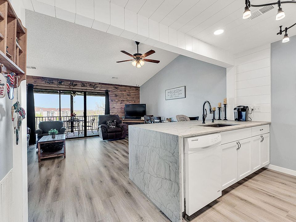 Indulge in cozy cabin vibes with this inviting 2-bedroom, 2-bathroom newly renovated condo, Nestled beside the Clubhouse and Pro Shop, this gem offers easy access to all the amenities of Pointe Royale. Discover the allure of this gated community boasting a premier golf course, putting green, outdoor and indoor pools, hot tub, tennis and pickleball courts, basketball court, scenic trails, and playgrounds. The clubhouse features a delightful restaurant, fitness room, and versatile meeting spaces. Plus, enjoy direct access Lake Taneycomo and just a brief 10-minute drive to Table Rock Lake. Experience the ultimate blend of comfort and recreation in one captivating location.