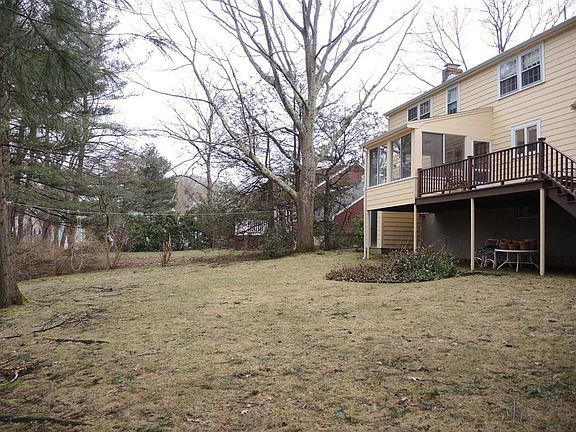 Well maintained Center Entrance Colonial with 8 rooms, 4 bedrooms, 2 1/2 baths. Great floor plan with welcoming foyer, side staircase, front to back living room with fire place, first floor den, dining room, eat in kitchen and back porch. Many special features include hardwood floors, master bathroom, central air conditioning, new boiler, recently painted exterior, deck overlooking large yard, and basement game room with fireplace. Sought after location. Short distance to Hersey Train Station & Broad Meadow Elementary School.