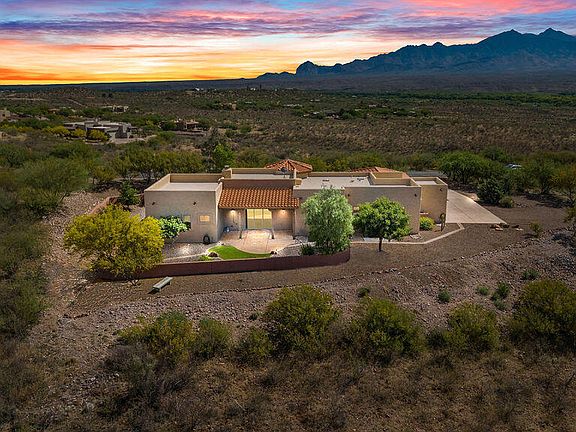 OWNER/AGENT. This luxurious 4.21 acre, 2,250 square foot mountain estate features three bedrooms, two bathrooms, 600 plus square feet of covered outdoor space to enjoy the breathtaking views of the Tumacacori and Santa Rita mountains ranges. The home features upgraded energy efficient lighting, ceiling fans, LG appliances, interior paint ('21), the roof was recoated in Nov '23, and new landscape.