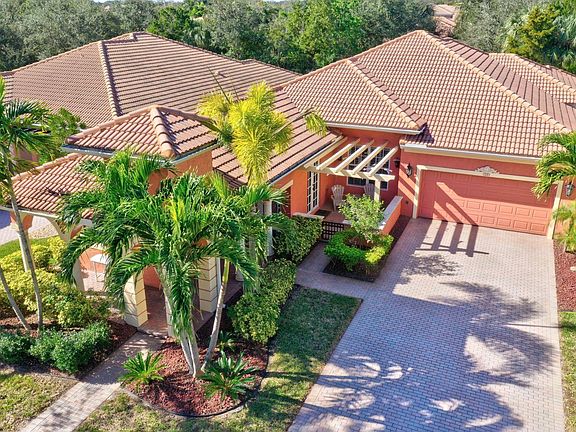 Pristinely maintained Mediterranean style three bedroom three full bath home with impeccable attention to detail. As the model name Palermo implies it brings back that sense of charm and old world hospitality the moment you enter the welcoming foyer. Beautifully painted inside and out with top of the line Sherwin Williams paint with crown molding to polish off throughout. Living friendly hard surfaced floors. Well placed gathering spaces with living, family, dining and breakfast areas in the interior. The exterior has a long covered front entry with pergola enhanced courtyard and in the privately fenced backyard a covered screened lanai with dual tropical fan and additional awning over the pool/BBQ area just off the full cabana bath entrance. Excellent kitchen layout for family or