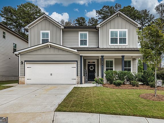 This exceptional custom-built residence is located in the sought-after Wilksmoor subdivision of Peachtree City. The home shows like a model home and showcases numerous high-end upgrades throughout. Set within a private cul-de-sac, guests are welcomed by an inviting rocking chair front porch and enter into a spacious foyer adorned with elegant hardwood flooring. The main level includes a guest suite with an adjoining bath, as well as an expansive family room featuring a brick fireplace that seamlessly connects with the kitchen and dining area. Notable features include a generous pantry, well-appointed mud room, and a three-panel gliding door that opens directly onto an oversized covered patio equipped with dual ceiling fans, a grilling station, and pre-installed hookups for a hot tub. Additional outdoor amenities comprise a custom stone firepit area. Upstairs, the luxurious en-suite master features a walk-in shower, soaking tub, dual vanity, linen closet, and a large custom closet system. A spacious laundry room offers a mud sink, folding station, hanging area, and built-in cabinetry. Three additional bedrooms occupy the upper level: one with a private bathroom and two sharing a hall bath. Completing the upstairs layout is a sizeable bonus room, ideal for a playroom, media space, or personal retreat. Additional features include plantation shutters throughout, remote control blind for the gliding door, oversized deep garage with epoxy flooring. All of this is connected to the Peachtree City Golf Cart Trails with easy access to shopping, schools, parks and so much more.