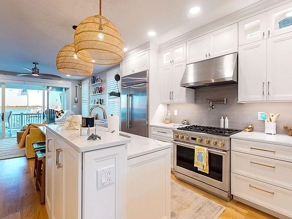 Immerse yourself in luxury with this magnificent bayfront home offering breathtaking open bay views. This residence provides the ultimate in coastal living. The property features a timeless custom white kitchen with quartz countertops and a spacious island for entertaining. High end GE Monogram appliances, Scotsman ice maker, Thermador built in Coffee/Espresso machine finish off this amazing kitchen. Hardwood floors and custom trim-work throughout each room. The Primary Suite has a walk-in closet with a built-in vanity. Radiant heated floors in bathrooms, lower level and garage. The home has a top-of-the-line home security system with multiple outdoor cameras and Sonos surround system. The lower level has been finished and provides a second entertaining area. As you move outside, you are greeted by amazing water views from all three large decks. The main deck is an entertainer's dream with a fully equipped custom outdoor kitchen with a Sunbright 40" TV and gas grill. For those cool spring and fall jersey shore nights you can sit by the built in gas fire pit and enjoy the picturesque views of the sunsets and Ocean City causeway. Bring your water toys as there is a 15,000-pound Hurricane high speed lift and two floating wave runner docks. This bayfront beauty won't last, it is a must see! Schedule your private showing today!